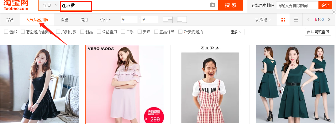 2. 淘宝搜索选款:根据人气排序